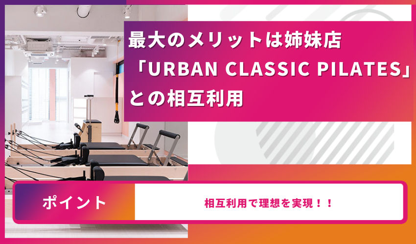 最大のメリットは姉妹店「URBAN CLASSIC PILATES」との相互利用